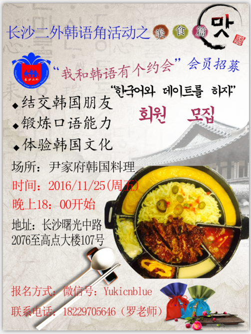 长沙二外韩语角活动之美食篇 “我和韩语有个约会”会员招募 “???? ???? ??” ...
